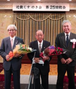 第25回総会にて記念撮影する歴代会長の加藤、 村上、曽我氏