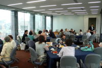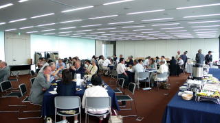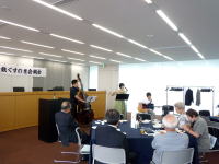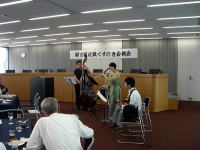 平成22年7月3日、加藤会長にお世話頂き大阪弁護士会館で開催しました。大阪弁護士会館は中之島公園を見下ろせる眺望の良い所にある、2006年竣工の新しいビルです。 朝からの大雨にも拘わらず60余名の方が参加されました。15回総会は会場が長く借りられたことから何時もの総会の部、宴会の部に加えて予備として二次会の部が設けられました。 総会の部 総会の部は平成7年卒の十河さんの司会で、加藤会長の挨拶で始まり、つづいて来賓の畑田樟樹会会長、横山母校校長を頂戴しました。 また、ちょうど大阪に来る予定があったとのことで東日本樟樹会会長の井上さんにもお話し頂きました。 次に議事に移り、「事業報告および事業計画」、「会計報告」、「新任役員承認」の順に進み、最後に小西副会長の閉会の辞で総会の部は終わりました。 新任の幹事として昭和34年卒の大北さん、平成7年卒の佐々木さん、十河さん、平成12年卒の仲渡さんが加わられました。 宴会の部 宴会の部は平成7年卒の佐々木さんの司会で、青野副会長の開会の辞、乾杯ののち、会食となりました。 ある程度お腹に入ったところで、津上信子さんのフルートによるジャズ・ライブ演奏を楽しみました。 津上信子さんは昭和32年卒の津上さんのお子さんです。演奏には宮本憲さんのギター、千北祐輔さんのベースが加わった三重奏です。枯葉、イパネマの娘、サマータイム、ふるさと、等おなじみの曲を約40分演奏して貰いました。 演奏の後恒例の抽選会を行い、演奏して貰った方も食事に加わってもらいました。 二次会 宴会の部が終わった14時以降、総会に使われた部屋と、3方向に窓のある部屋を使って思い思いの人を囲んで1時間以上歓談がつづきました。