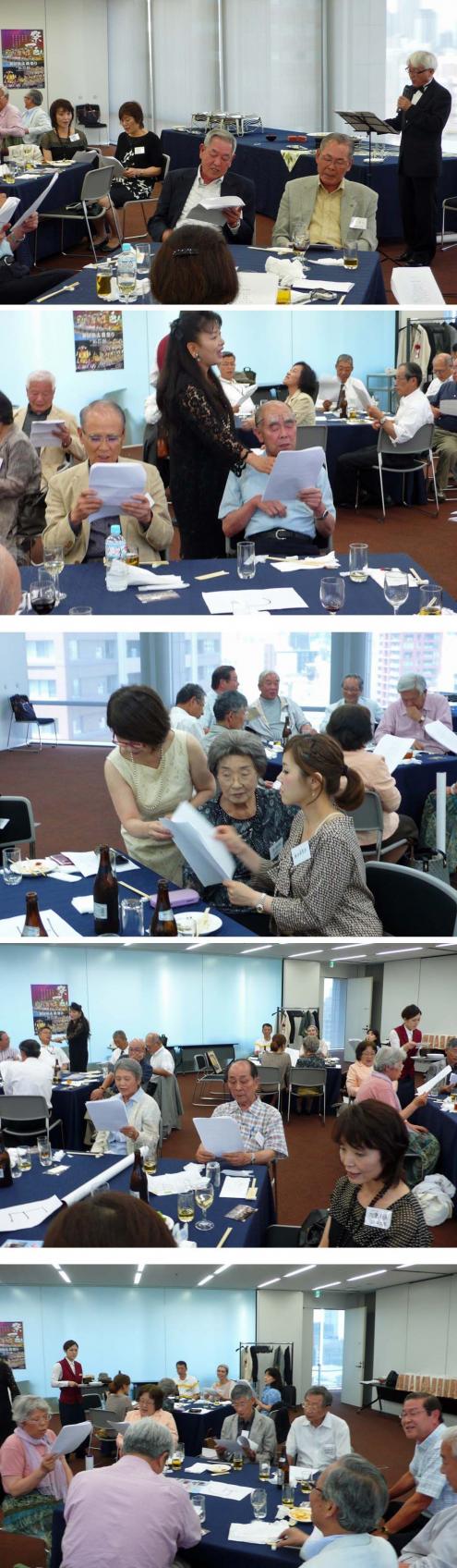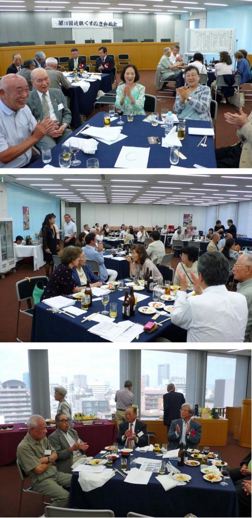 今回も加藤幸則名誉会長の世話によって大阪弁護士会館で開催し、約60名が出席されました。新たな試みとして、最初に記念写真を撮り、プリントして、すぐに配布しました。記念になると好評でした。 第一部総会は、村上健治会長の開会の挨拶で始まりました。来賓祝辞では、畑田雅敏樟樹会会長がソーシャルネットワークの活用によって若い卒業生とコミュニケーションを取っている事例を紹介され、母校の藤田繁治校長からは大学進学の内容が良好である由報告されました。初参加である白石徹衆議院議員〈昭和49年卒〉が高校時代に「川の流れのように」の作曲家•見岳章さん〈昭和50年卒〉とバンドを組んでいたとのお話がとび入りでありました。 また、このたびの会長職のバトンタッチを機に、会の発起•設立以来永年会長を務められた加藤幸則名誉会長と円滑な運営とHP制作等にご尽力された北脇重康前幹事長(残念ながら欠席)のご功労に感謝の意を表し、永年功労者記念品として「太鼓台刺繍額」が贈られました。村上会長は両氏に対しての感謝と今後の抱負を述べ、加藤名誉会長からは新体制で今後益々会を盛り上げていってほしいとの答礼がありました。続いて宮崎素伸幹事長による議案「平成24年度事業報告および25年度事業計画」、「役員の改選」、「HP運営状況報告」、原田順子会計幹事より「会計報告・監査報告」の説明があり、原案通り承認されました。司会は若手のホープ、佐々木清一副幹事長。 第二部はコンサート。作曲家でピアニストの宮下和夫さんとバリトンの中西康雄さんの演奏と歌。校歌斉唱では、校歌が無かった時代の方から歌を知らないとの声があがり、急遽中西さんに歌唱指導をしていただきました。「夏は来ぬ」「うみ」など初夏にちなんだ歌のメドレー、女性幹事からのリクエストであるシューベルトの歌曲、そして前述のビッグヒット曲「川の流れのように」。アンコールは宮下さん作詞作曲、東日本大震災被災者の皆様への応援歌「ラッキーの歌」、この曲は被災し家族と離ればなれになった犬が飼い主の元にもどるという内容で被災地の子どもたちにも大好評の曲、「うれしくて、泣けました」と宮下さんの手を握る方も…。宮下さんは京都大原の古民家暮らし、NHKBS番組「猫のしっぽ カエルの手」のべニシアさんとお友達で彼女の家やご自宅でコンサートを行なっています。また、機会があれば分科会のようなかたちでお訪ねしてはどうかとの声もありました。 第三部懇親会は、岡本一馬副会長の開会の辞・乾杯で始まりました。司会は昨年一昨年に続き卒業生でフリーアナウンサー兼保育園園長の宮本潤子さん〈昭和50年卒〉。初参加の方々の自己紹介では、原田会計幹事のお母様と甥御さんが初参加、受付サポートをしてくださったお嬢さんと三世代が揃いました。恒例の抽選会は佐脇吉記幹事の差配により笑顔で進み、最後に小西良二副幹事長の発声による一本締めにて終了しました。 その後同じ会場で恒例の二次会も行われ、17時近くまで多くの方が歓談、交流されました。 (以下の写真は昭和31年卒の白石杢壽幹事、昭和41年卒の村上健治会長のご提供のものです。)