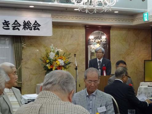 総会の司会者、佐々木副幹事長。