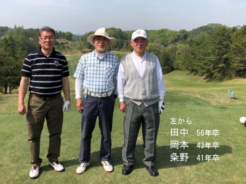 表彰式です。左は最長老、加藤名誉会長。80歳を過ぎても現役プレヤーです。真ん中は優勝した佐々木さん。こちらは参加者最年少です。加藤名誉会長は元大阪弁護士会会長、佐々木さんは新進気鋭の弁護士として活躍中。佐々木さんは加藤名誉会長を超えられるか、師弟関係に注目です。右は新居浜から参加の長野さん。シングルの腕前でベスグロでした。
