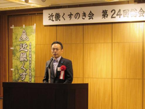来賓のあいさつを述べる樟樹会の畑田雅敏前会長