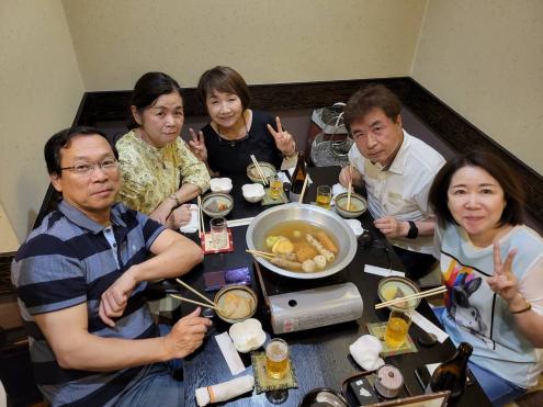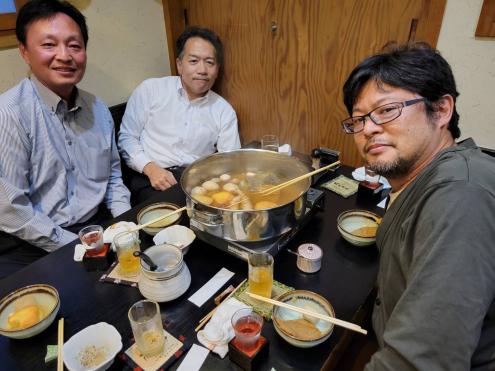 第3回「愛媛美食探訪クラブ」報告 令和5年5月31日、大阪・天満橋駅近くの「旨おでん だんだん」にて、第3回「愛媛美食探訪クラブ」を開催いたしました。愛媛の食やお酒を楽しもうと立ち上げた企画の第3弾で、今回は21名の同窓生の参加でした。 伊方町出身の女将さんによくしていただき、出汁のきいた絶品おでんやじゃこてんをたらふくいただき、「石鎚」などの愛媛の日本酒の一升瓶が次々と空いていきました。有志で二次会、三次会とはしごして、今回も飲み過ぎてしまいました。 今回初参加の同窓生が6人いらっしゃっていて、予定していた定員をオーバーして少し窮屈な感じになってしまいましたが、それだけ参加者の距離も近く、参加者一人一人のお話もお聞きすることができ、和気あいあいと交流を深めることができました。 関西にある愛媛の美食を巡る「愛媛美食探訪クラブ」第4弾も企画しています。「行事案内」のところで案内をしていますので、まずは一度、顔を出してみてください。