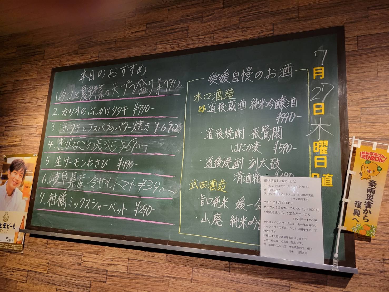 砥部町出身の男前の店長が経営されていまして、突出しのじゃこてん、名物の山盛りせんざんき、愛媛から直送の鮮魚、締めの鯛めしまで、愛媛尽くしの美味しくてボリュームのある料理と、愛媛の地酒も含めたプレミアムの飲み放題で、最初から最後まで愛媛を堪能することができます。初参加の方も大歓迎ですので、お一人様でも、同級生を誘い合ってでも、お気軽にご参加ください。愛媛の料理とお酒、伊予弁での会話を楽しみましょう。