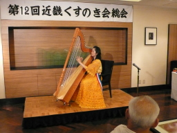 平成19年6月30日、大阪全日空ホテルで開催 昭和33年卒の岩佐康男さんの姪御さんの岩佐しおりさんにアルパ演奏をお願いした。