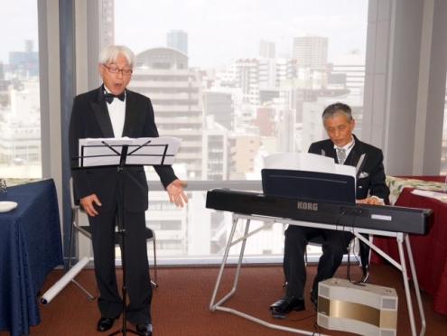 演奏「校歌斉唱並びに童謡メドレー」を行なって下さった宮下和夫さん〈右〉と中西康雄さん。