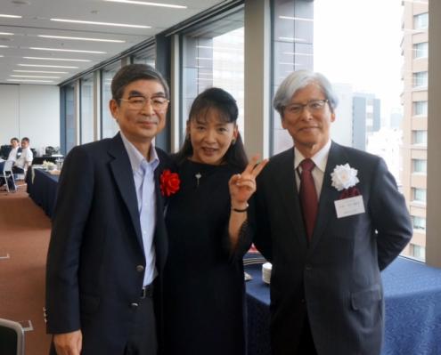 右は昭和41年卒の村上健治会長。左は村上会長の同級生の永易克典さん。真ん中は昭和50年卒の宮本潤子さん。村上会長はダイワハウス工業の社長、永易さんは三菱東京UFJ銀行頭取として、二人は日本経済の中心で活躍されました。宮本さんは、アナウンサーやキャスタ-をNHKと民放で務めました。後輩の励みとなる三人です。