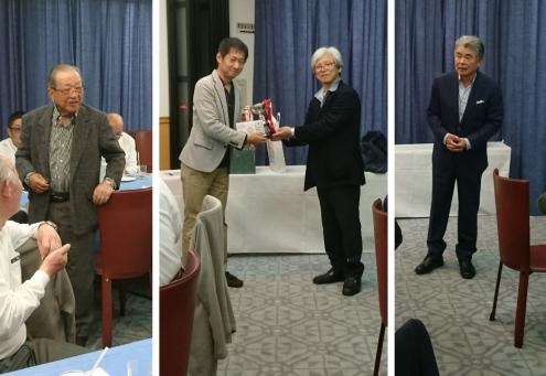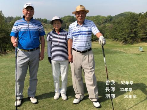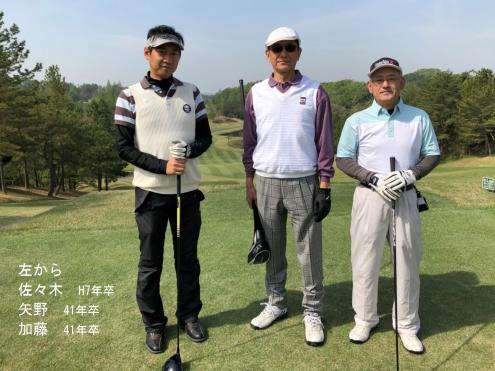 表彰式です。左は最長老、加藤名誉会長。80歳を過ぎても現役プレヤーです。真ん中は優勝した佐々木さん。こちらは参加者最年少です。加藤名誉会長は元大阪弁護士会会長、佐々木さんは新進気鋭の弁護士として活躍中。佐々木さんは加藤名誉会長を超えられるか、師弟関係に注目です。右は新居浜から参加の長野さん。シングルの腕前でベスグロでした。