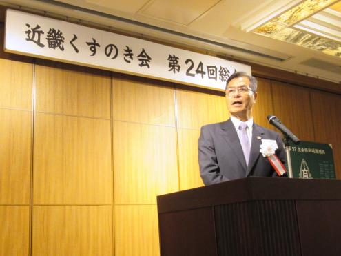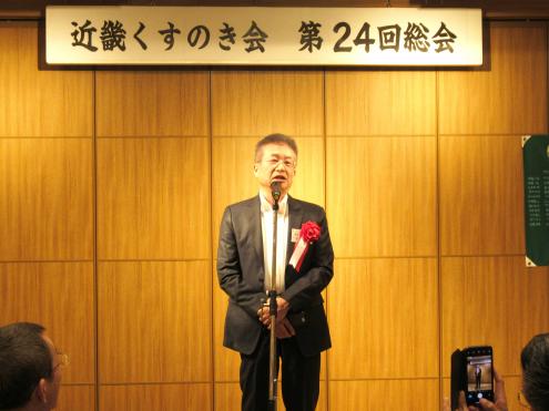 来賓のあいさつを述べる樟樹会の畑田雅敏前会長