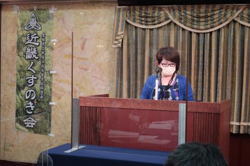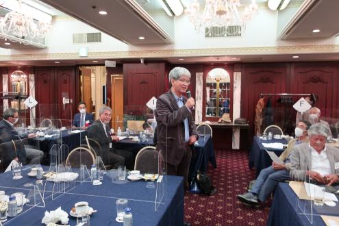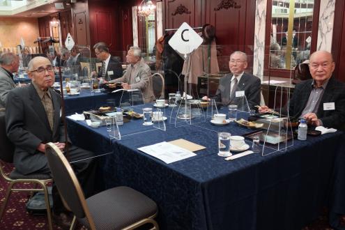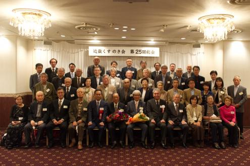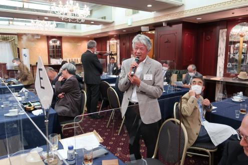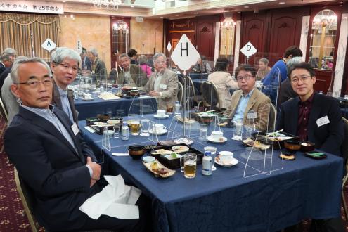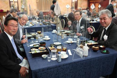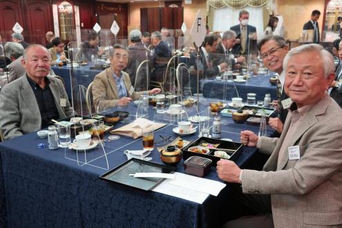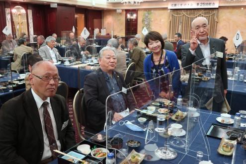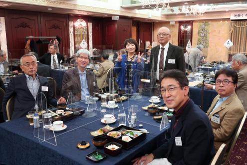 第25回近畿くすのき会総会は11月6日(土)、大阪第一ホテル (通称大阪マルビル)6階モナークにて開催しました。 新型コロナウイルス禍の長期化に伴い、本会総会・懇親会の長期延期を余儀なくされたため、2年ぶりの開催となりました。役員改選が行われ、会長が11年ぶりに交代、新体制がスタートしました。 今総会は、参加人数、開催時間を制限、マスク会食に、消毒、換気の徹底を心掛けるなど、コロナ対策を十分に講じたうえで開催されました。自粛を強いられる中、来賓として樟樹会本部より妹尾次郎会長(昭和55年卒)にご出席をいただき、総勢40名を超える同窓会となりました。参加した会員は久しぶりの再会に喜びをかみしめ、旧交を温めました。 総会は加藤明美副幹事長(昭和55年卒)が司会を務め、村上健治会長(昭和41年卒)の開会の辞の後、妹尾樟樹会会長が来賓のご祝辞を述べられました。妹尾会長は、コロナ禍の影響で太鼓祭りが2年続けて中止となった現状や、同窓生が芥川賞候補にノミネートされたこと、全国高校総体での生徒の活躍ぶりなどを報告し、同窓会活動については、近畿くすのき会など各会とどう協力体制を構築していこうとしているのかを力説されました。 今回、コロナ禍のため出席を見合わせた新居浜西高等学校の願成寺優校長(昭和56年卒)は、約11分間のビデオメッセージを寄せ、国公立大学への進学状況や部活動の全国大会出場など、母校の現状を詳細にご報告いただきました。生徒会長の三宅百合花さんと全国高校総体ウエイトリフティング女子49キロ級で優勝した安部希美さんも主演しました。 議事では岡本一馬幹事長(昭和43年卒)から、①役員改選の件、②令和元年度、2年度事業報告、③令和元年度、2年度会計決算報告及び監査報告、④令和3年度事業計画の4案件を提案。原田順子常任幹事(昭和49年卒)から会計報告、近藤昭子さん(昭和32年卒)から会計監査状況が報告され、すべて原案通り承認されました。 その後、就任が決まった曽我浩新会長(昭和52年卒)があいさつに立ち、「コロナ禍の中で、人と人の絆の大切さを感じています。同窓会は、それを実現する意味でもいい場だと思います。今後も皆さんと交流を深めてまいります。また、若い人の参加も増やしていきたい」と力強い抱負を語りました。11年間、本会2代目の会長を務められた村上前会長に花束と記念品が贈られ、村上前会長は「諸先輩に恵まれ、後輩に恵まれ、きょうの日を迎えることができました。皆さんの協力のおかげ」と感謝の言葉を述べました。また、加藤幸則名誉会長(昭和26年卒)の卒寿のお祝いも贈呈され、「きょうも大変心配しましたけれど、このように総会が開けて大変幸せです。生涯、元気である以上はくすのき会に顔を出したい」と喜びを口にしました。橋本研副会長(昭和45年卒)の閉会の挨拶で総会を終了しました。 総会に続き、大阪大学大学院医学系研究科の徳増有治特任教授(昭和51年卒)に「不完全な日本、医療神話と健康、ヘルスケア」をテーマに講演して頂きました。徳増特任教授は東京工業大学を経て、昭和56年、通産省(現経済産業省)に入省された元官僚で、小泉内閣(平成17年~)、安倍第1次内閣(平成18年~)当時、二階、甘利経産大臣の下、医療制度改革を主導されました。平成26年に大阪大学に転職されてからは、世界に先駆けた先進的な医療開発に取り組まれており、医療制度の現状や問題点、少子高齢化の課題、国際競争力の現状などを約1時間にわたって解説していただきました。(講演の要旨は下の『講演要旨』の部分をクリックして下さい。なお「プログラムを開く」と「ファイルを保存する」の選択を指示される場合は「プログラムを開く」を選択して下さい。 ) 『講演要旨』 続く懇親会は、佐々木清一副会長(平成7年卒)の開会の辞と乾杯で始まりました。続いて、原田順子常任幹事、田中良典副幹事長(昭和56年卒)矢野寿常任幹事(昭和58年卒)入江智美常任幹事(昭和58年卒)がインタビュアーを務め、参加された会員の皆様から、コロナ禍における近況報告、母校への思いを口ぐちに語った「参加者マイクパフォーマンス」は盛況でした。参加者から寄せられたお土産を景品にした抽選会や校歌斉唱もあり、会場は大いに盛り上がりました。田中良典副幹事長が閉会の辞を述べ、田中副幹事長から指名を受けた昭和58年卒の田中吉則さんが次回総会での再会を呼び掛け、盛会のうちに幕を閉じました。帰りには新居浜の懐かしいお菓子「どらいち」のお土産を手に散会しました。