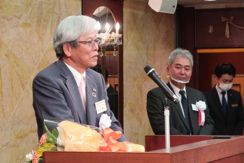 御礼を述べる村上健治前会長