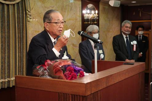 祝辞を述べる樟樹会の妹尾次郎会長