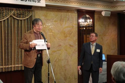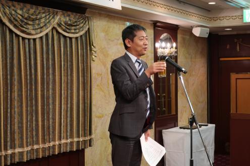 懇親会で閉会の辞を述べる田中良典副幹事長