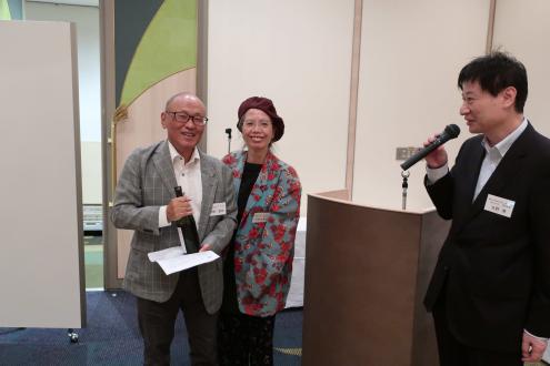 講演会で新居浜時代の懐かしい思い出を語る福田卓郎氏