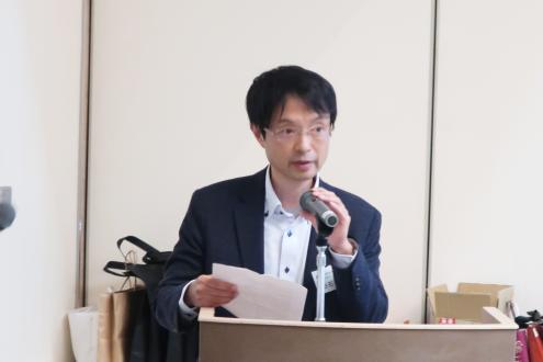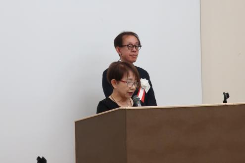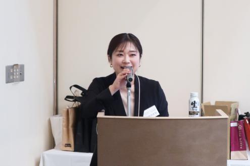 太鼓台動画の説明をする藤田紗八加常任幹事